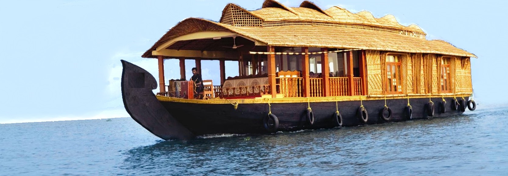 Alappuzha Boat House - A floating holiday, best known for house boat cruises along the rustic Kerala backwaters, a network of tranquil canals and lagoons is perhaps the most enchanting holiday experience in the world. Enjoy the unique experience of cruising through the backwaters of Kerala. House Boats are huge, slow moving, exotic barges designed for sheer leisure trips. Night Stay in Boat House.